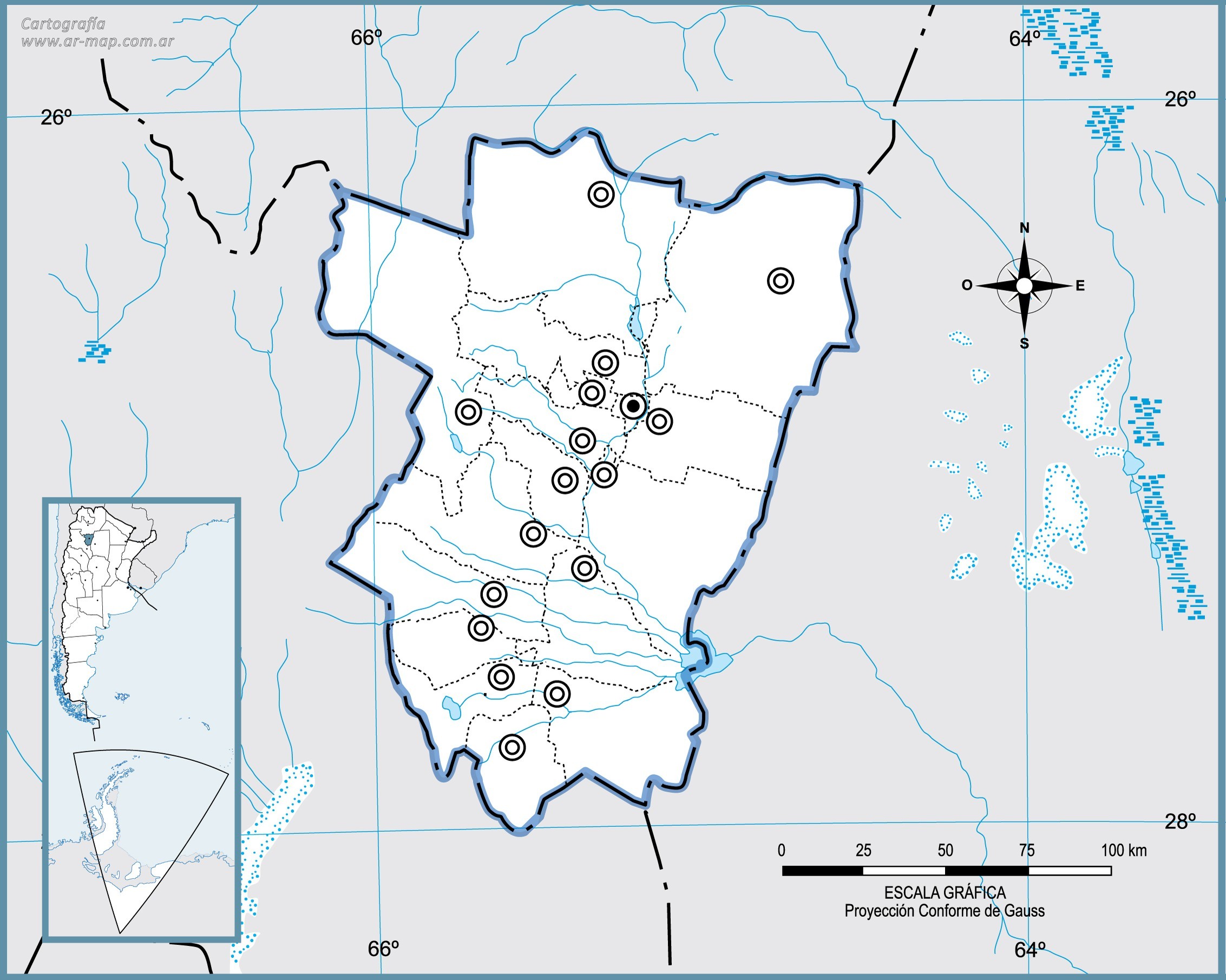 Estos mapas mudos de la provincia de Tucumán representan la cartografía de la provincia, pero sin ningún tipo de etiquetado. Estos mapas en blanco se pueden utilizar, por ejemplo, en el ámbito de la educación. Pueden servir como base para muchos mapas más elaborados.
