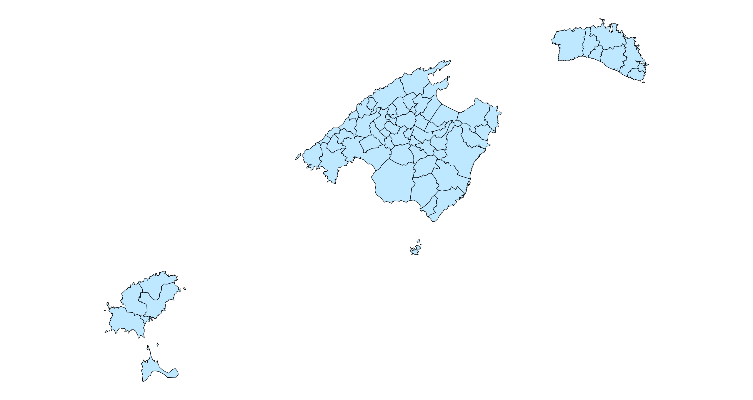 Estos mapas mudos de las Islas Baleares representan la cartografía de la comunidad autónoma, pero sin ningún tipo de etiquetado. Estos mapas en blanco se pueden utilizar, por ejemplo, en el ámbito de la educación. Pueden servir como base para muchos mapas más elaborados.