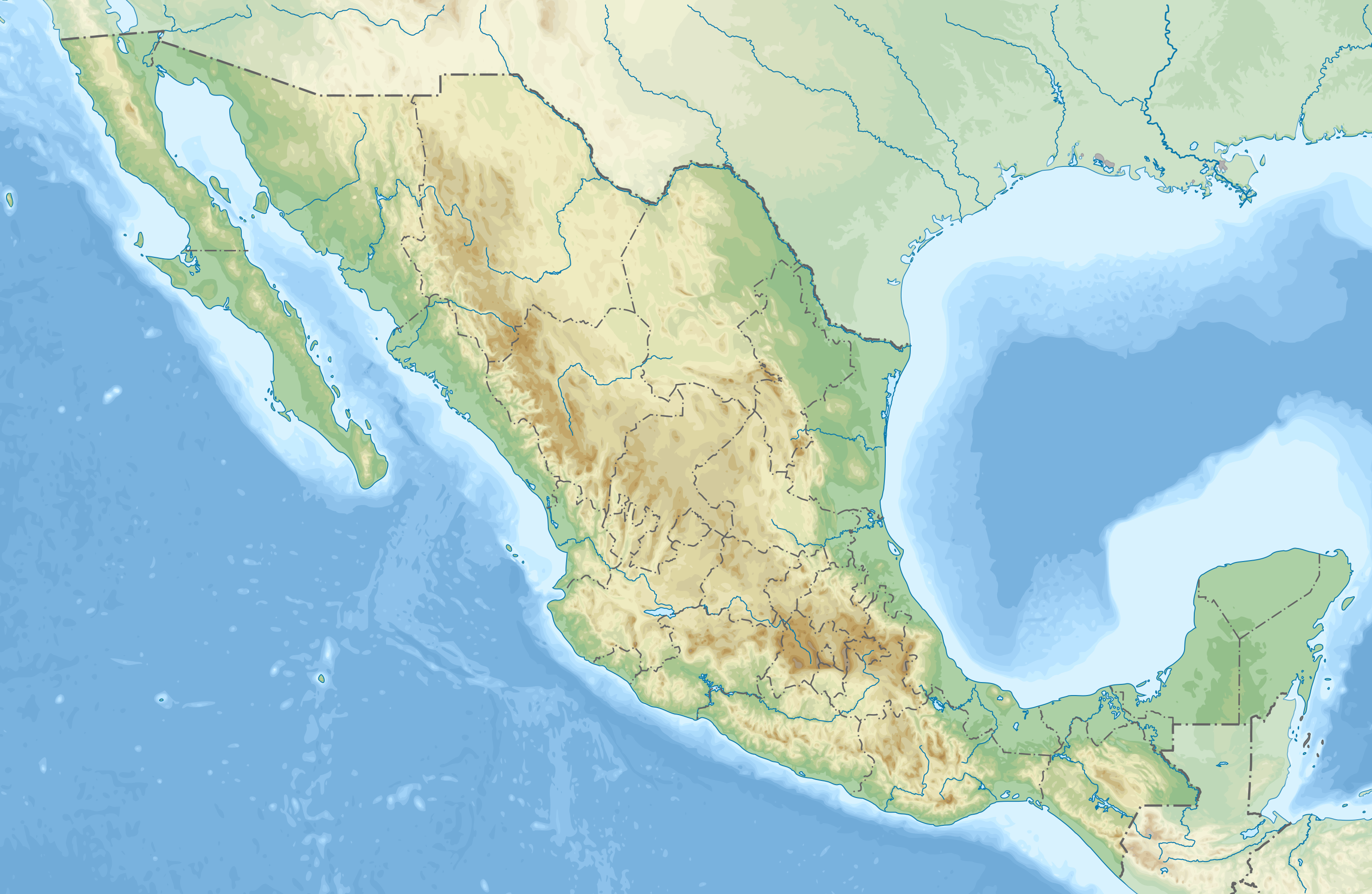 Estos mapas mudos de México representan la cartografía del país, pero sin ningún tipo de etiquetado. Estos mapas en blanco se pueden utilizar, por ejemplo, en el ámbito de la educación. Pueden servir como base para muchos mapas más elaborados.