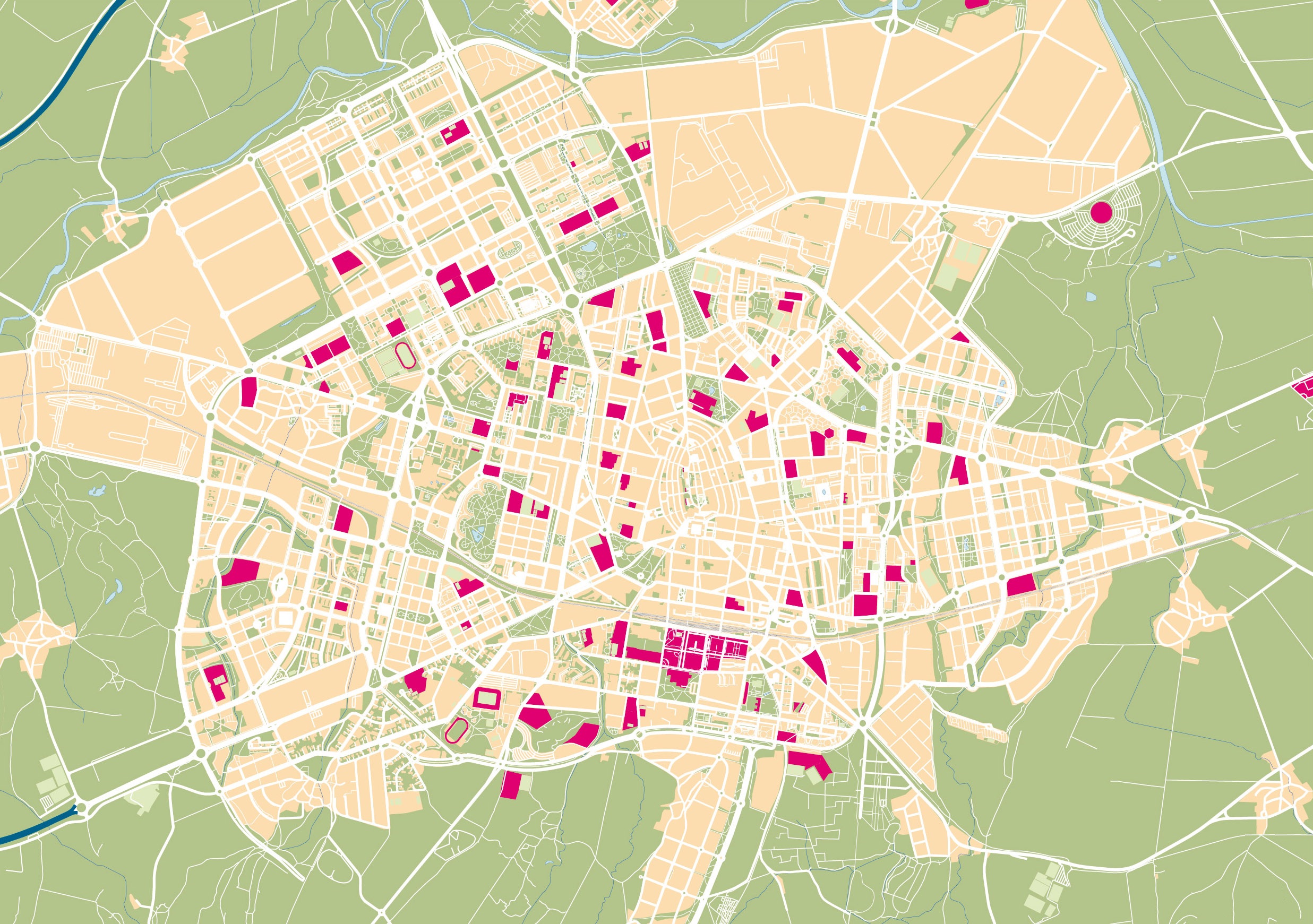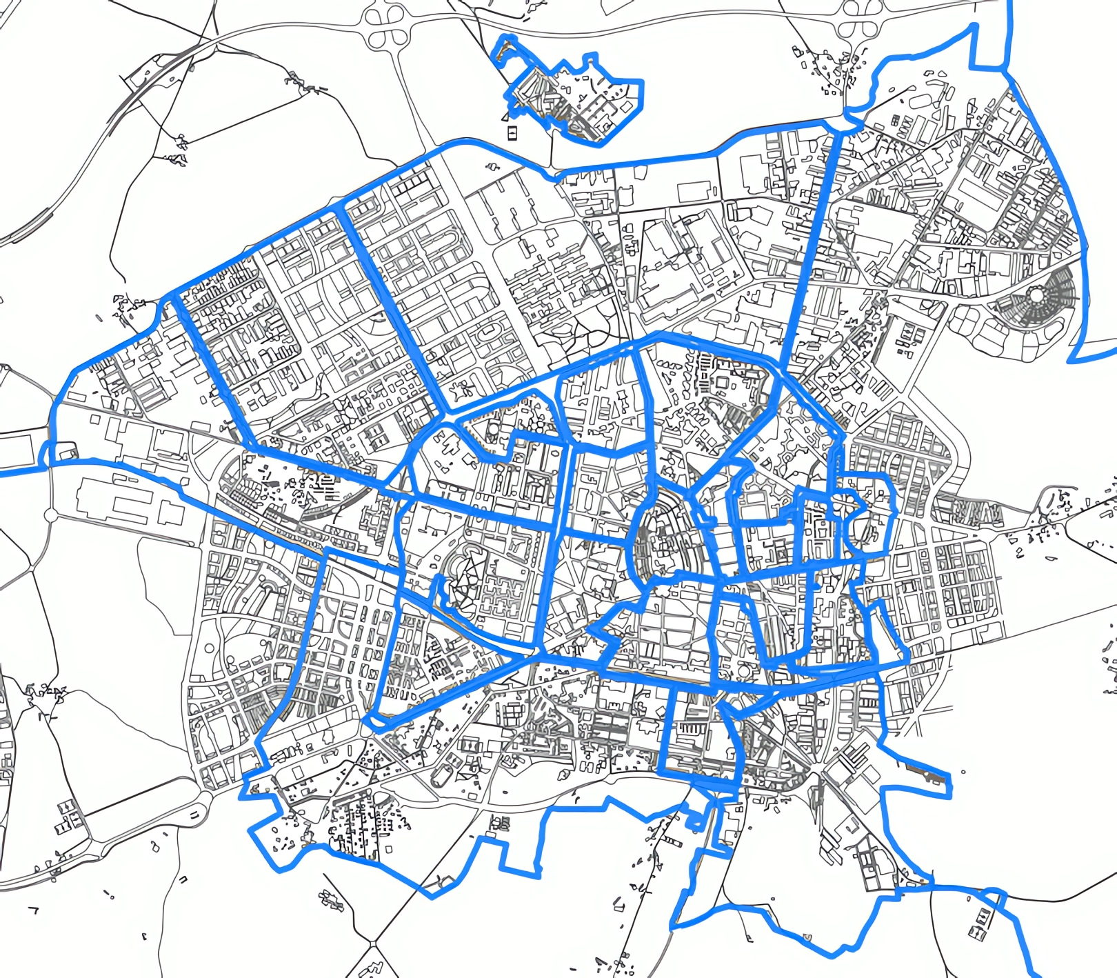 Estos mapas mudos de Vitoria-Gasteiz representan la cartografía de la ciudad, pero sin ningún tipo de etiquetado. Estos mapas en blanco se pueden utilizar, por ejemplo, en el ámbito de la educación. Pueden servir como base para muchos mapas más elaborados.