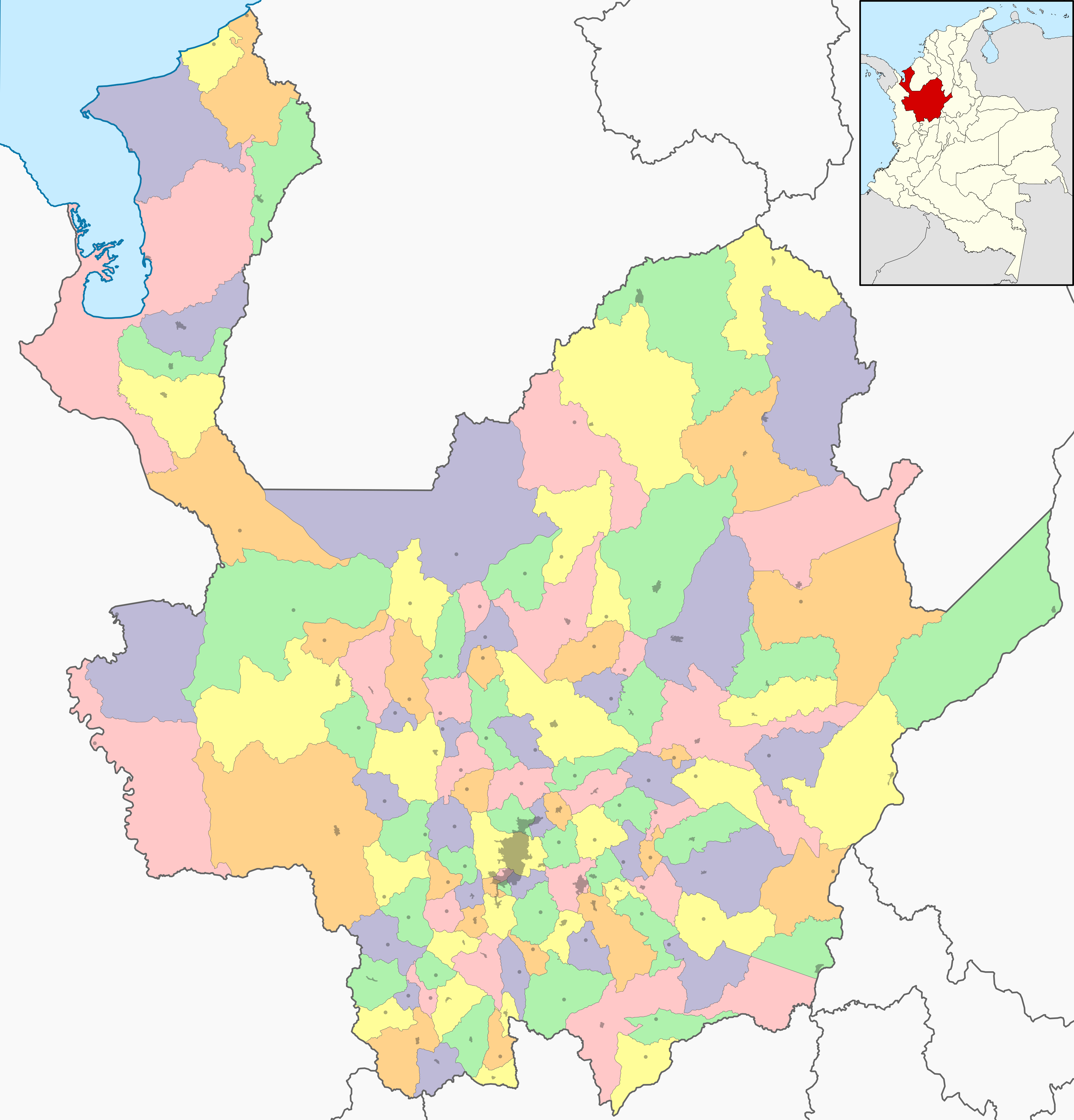 Estos mapas mudos del departamento de Antioquia representan la cartografía del departamento, pero sin ningún tipo de etiquetado. Estos mapas en blanco se pueden utilizar, por ejemplo, en el ámbito de la educación. Pueden servir como base para muchos mapas más elaborados.