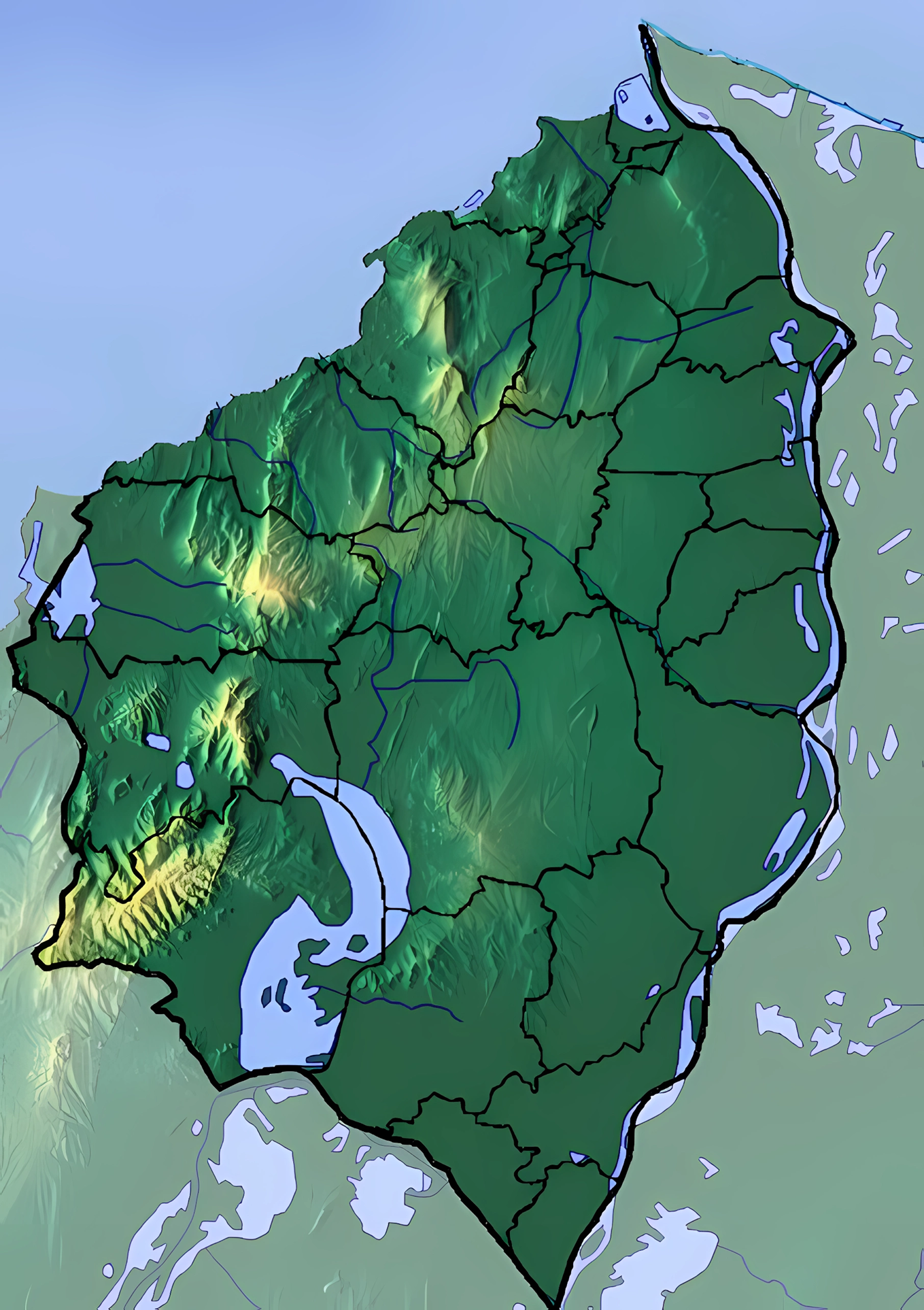 Estos mapas mudos del departamento del Atlántico representan la cartografía del departamento, pero sin ningún tipo de etiquetado. Estos mapas en blanco se pueden utilizar, por ejemplo, en el ámbito de la educación. Pueden servir como base para muchos mapas más elaborados.
