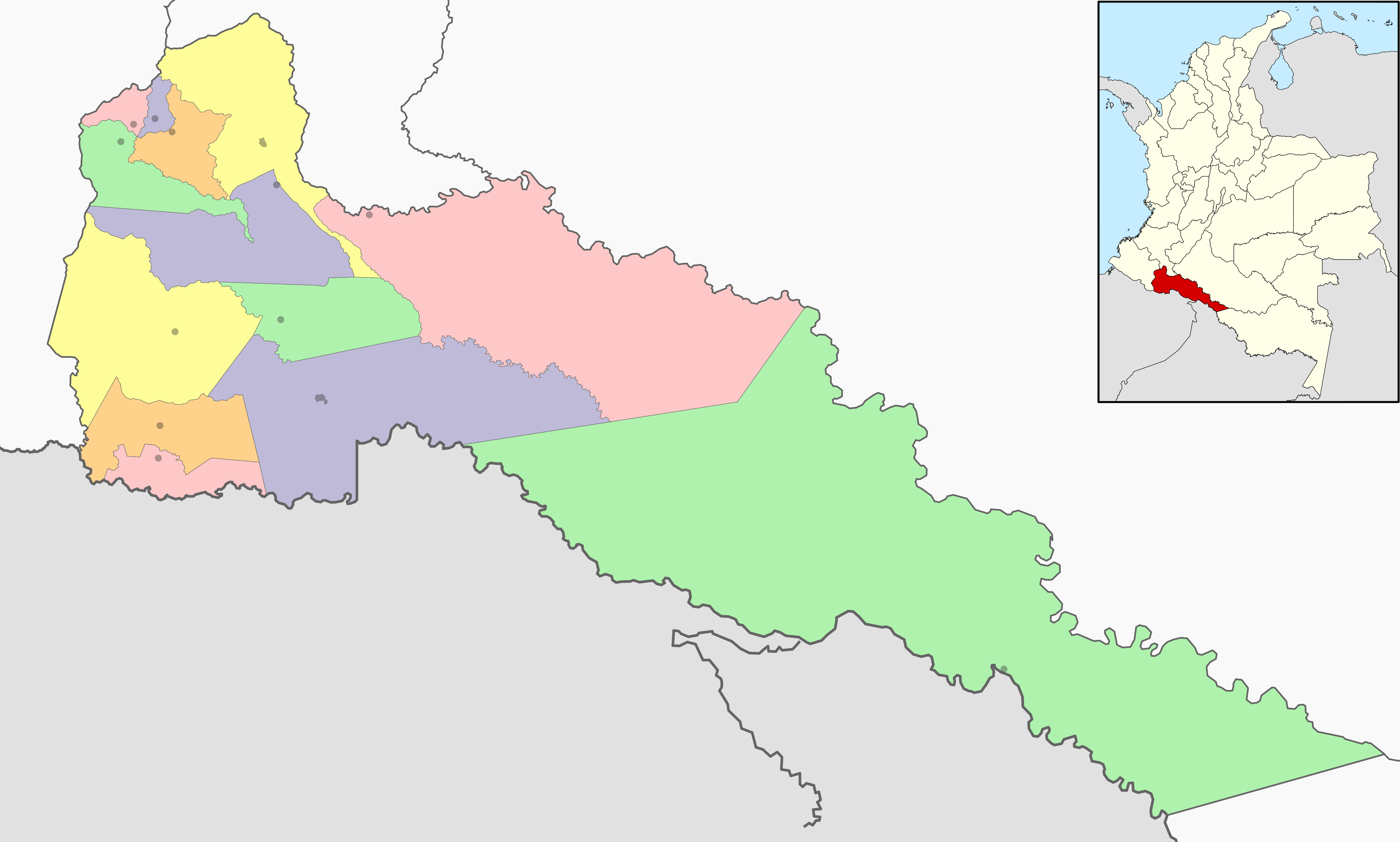 Estos mapas mudos del departamento del Putumayo representan la cartografía del departamento, pero sin ningún tipo de etiquetado. Estos mapas en blanco se pueden utilizar, por ejemplo, en el ámbito de la educación. Pueden servir como base para muchos mapas más elaborados.