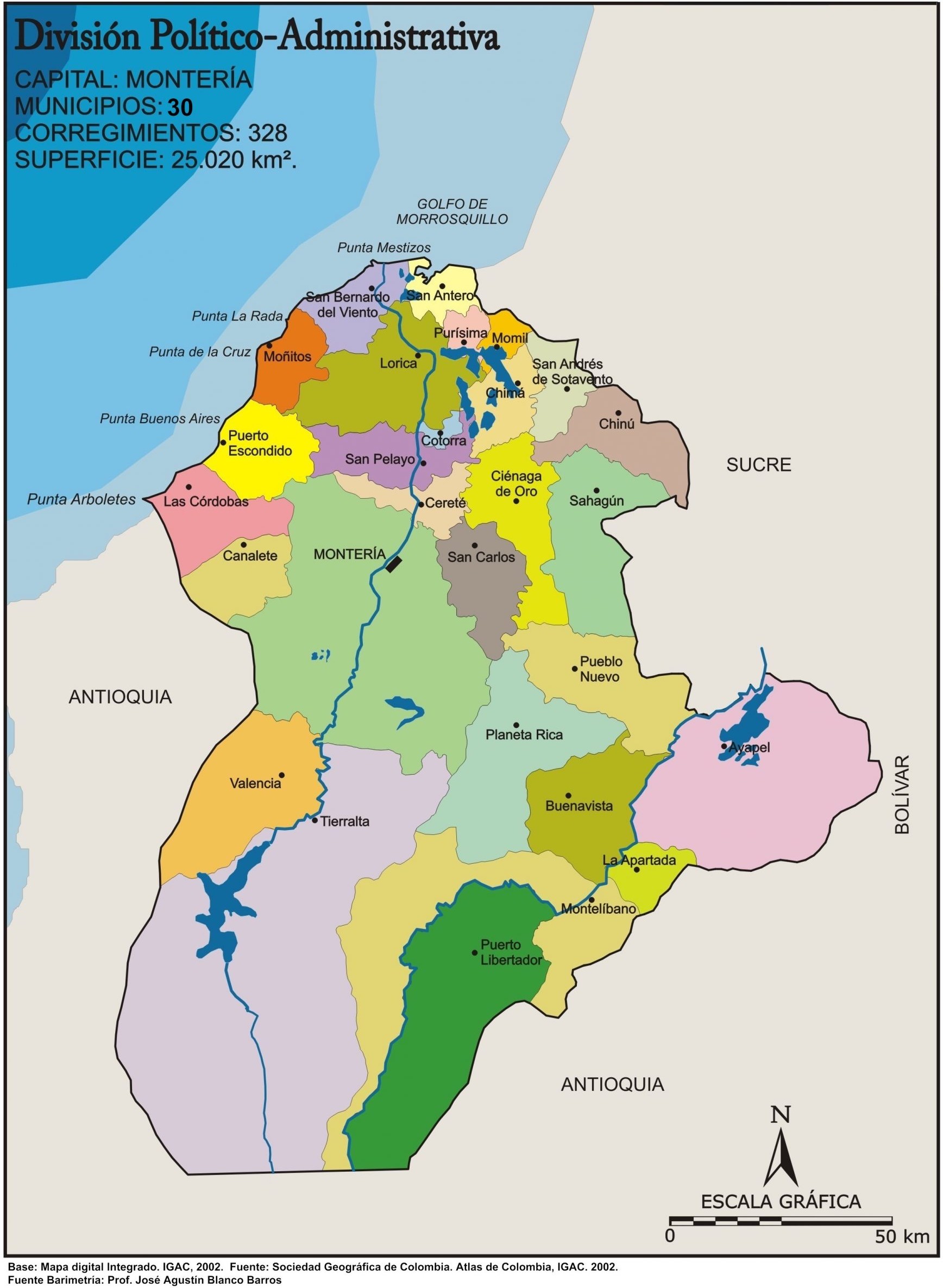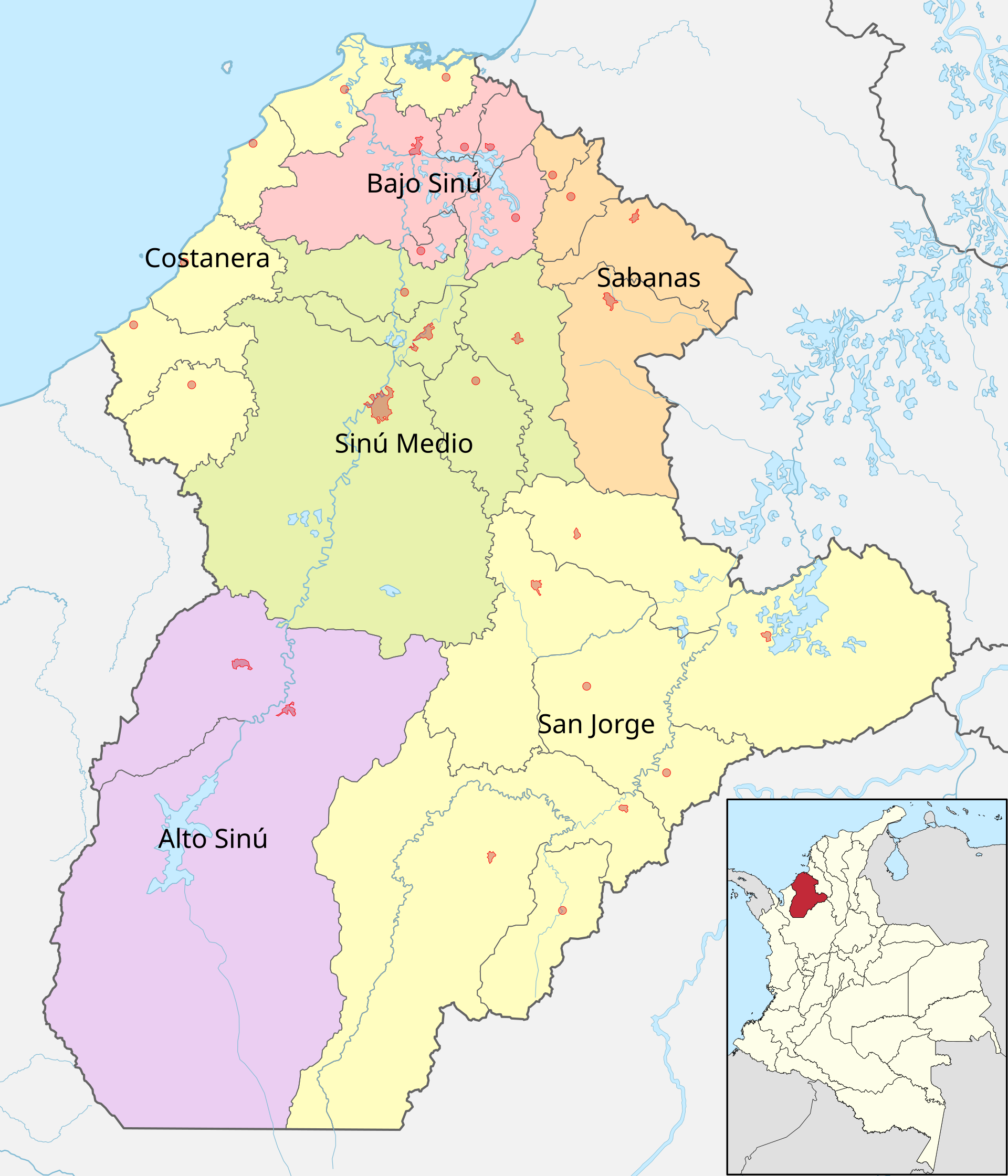 Mapa político del departamento de Córdoba (Colombia)