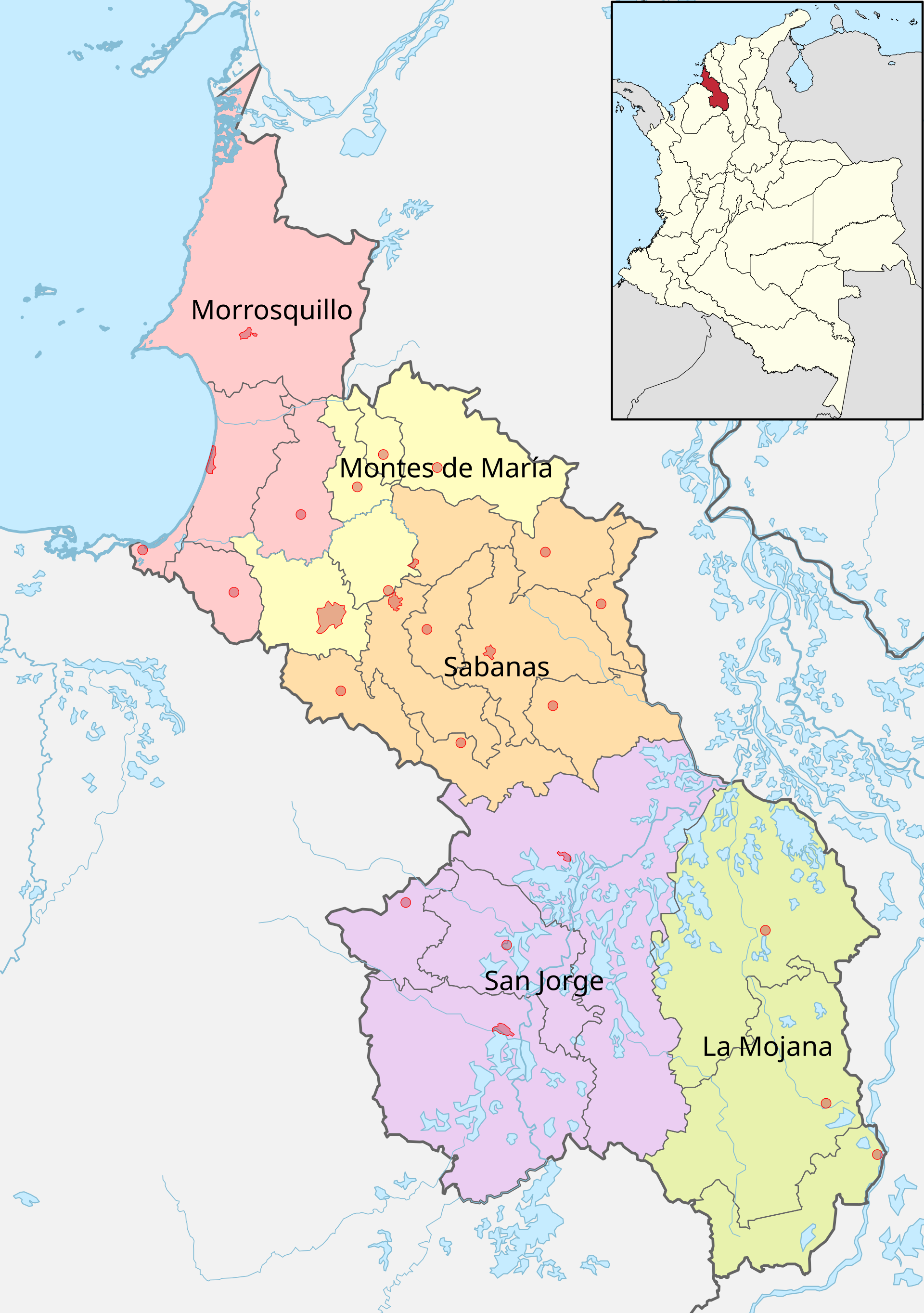 La Mojana: conformado por los municipios de Guaranda, Majagual y Sucre.