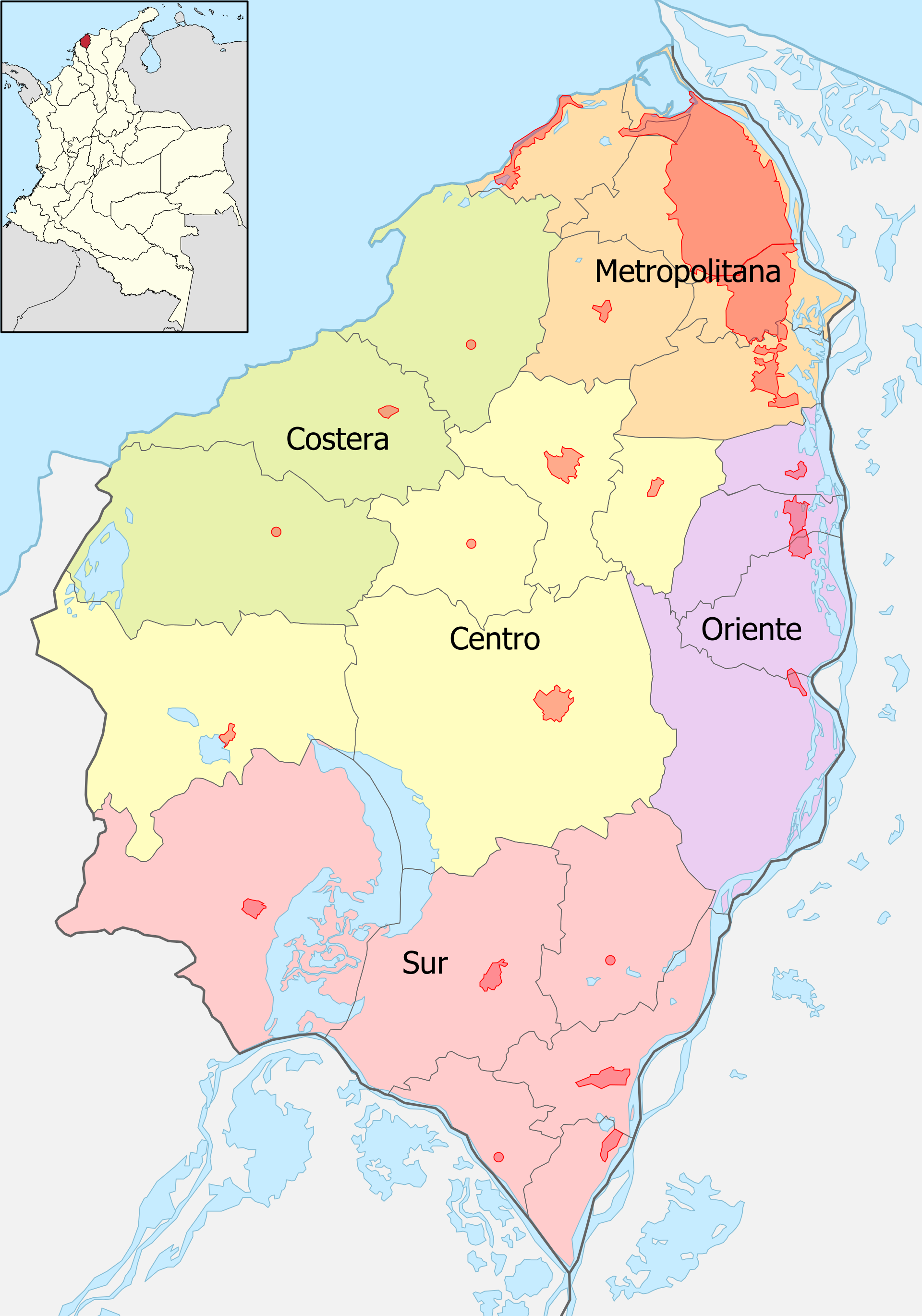 Metropolitana: conformada por los municipios de Barranquilla, Galapa, Malambo, Soledad y Puerto Colombia.