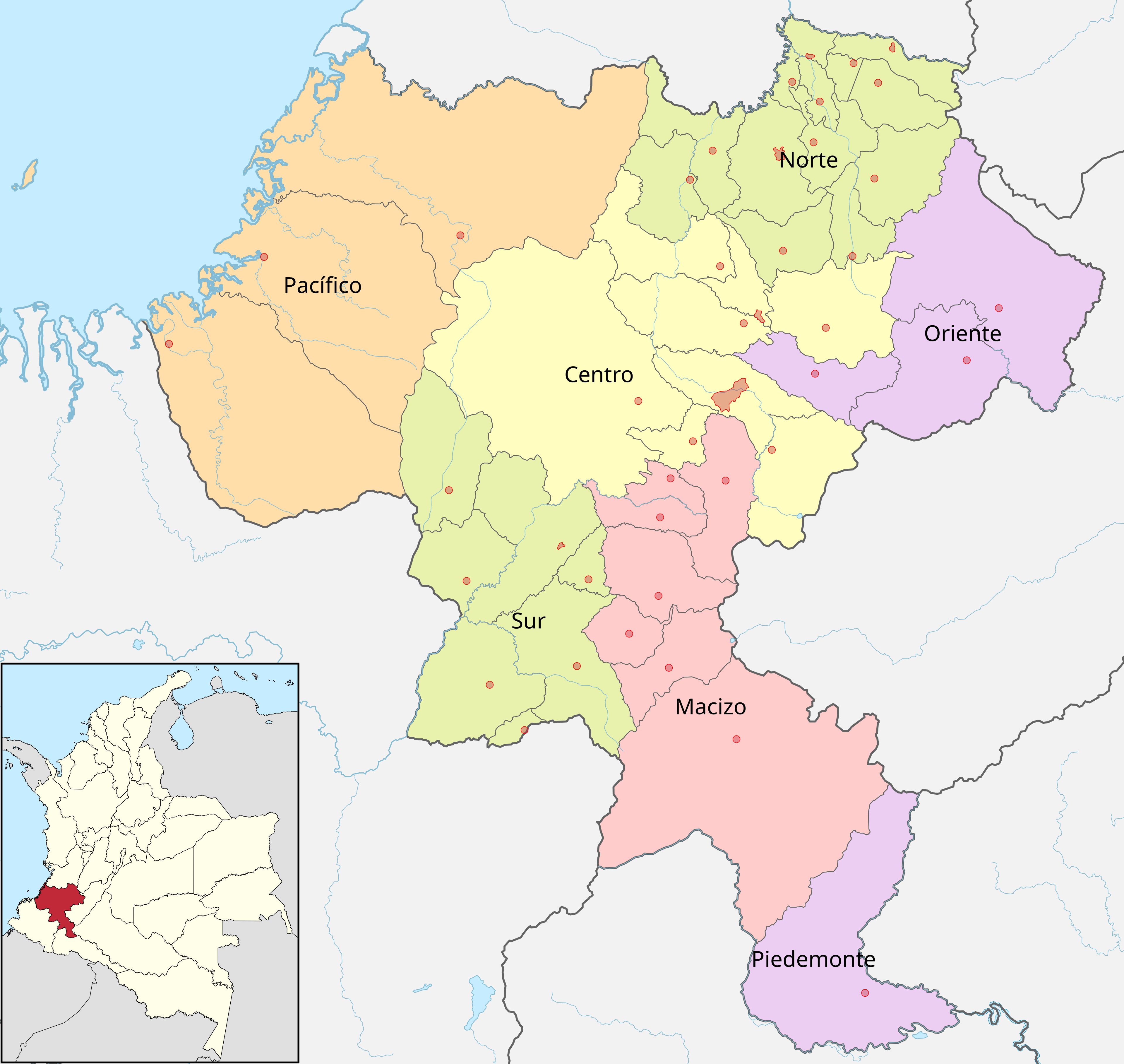 Los municipios se subdividen en corregimientos, veredas y resguardos indígenas.