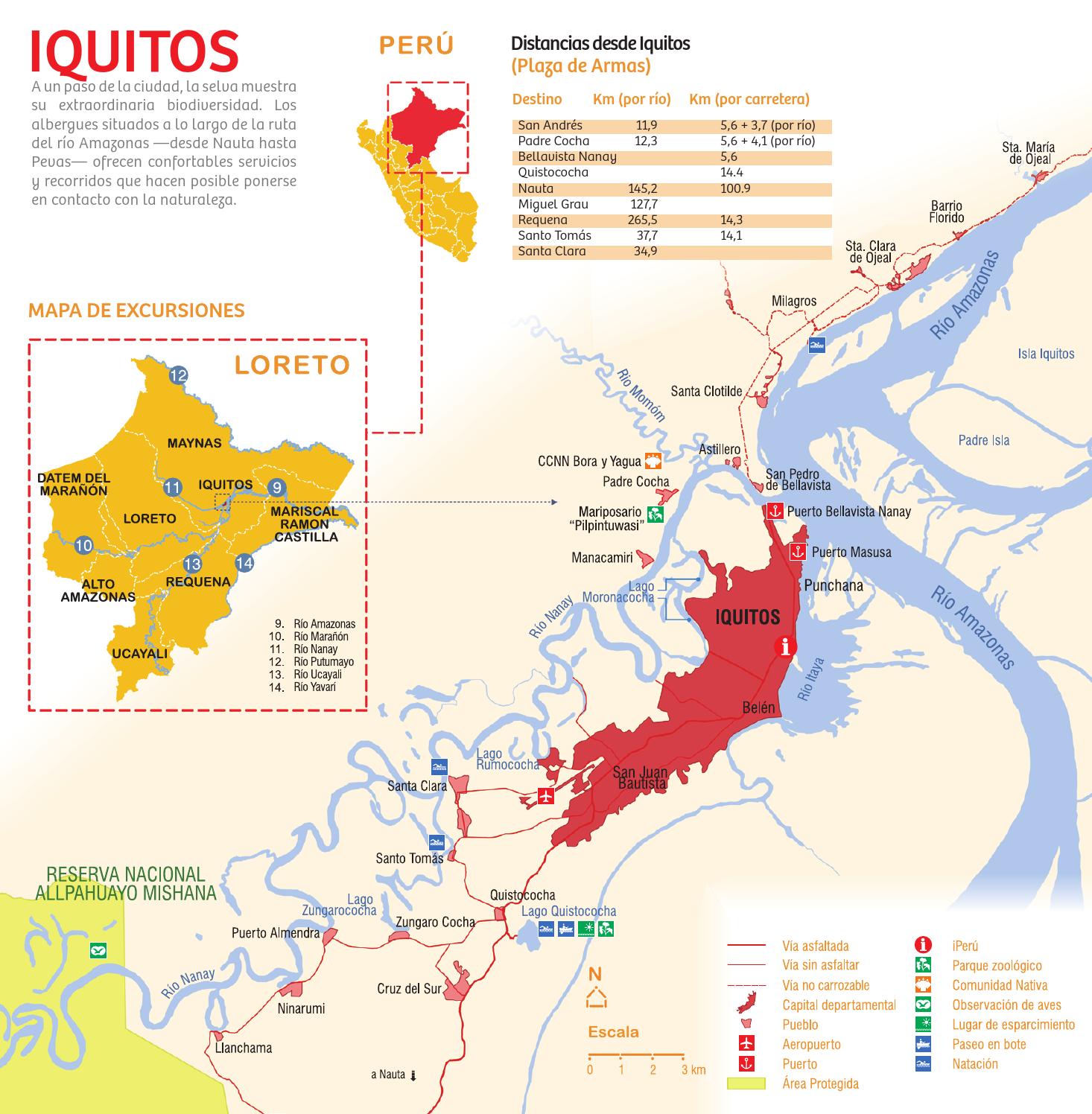 La ciudad también es hogar de empresas turísticas únicas como Otorongo Expeditions, Amazon Golf Course, Project Amazonas (dedicada a la investigación y conservación) y Emperador Terraza. Experiencias especiales fuera de las zonas turísticas principales de la ciudad incluyen la Isla de los Monos, el mariposario Pilpintuwasi, el Fundo Pedrito (una granja de caimanes, paiches y pirañas), el circuito Iquitos-Zungarococha-Corrientillos-King Kong-Nina Rumi, y los distritos adyacentes Mazán, Indiana y Bellavista.
