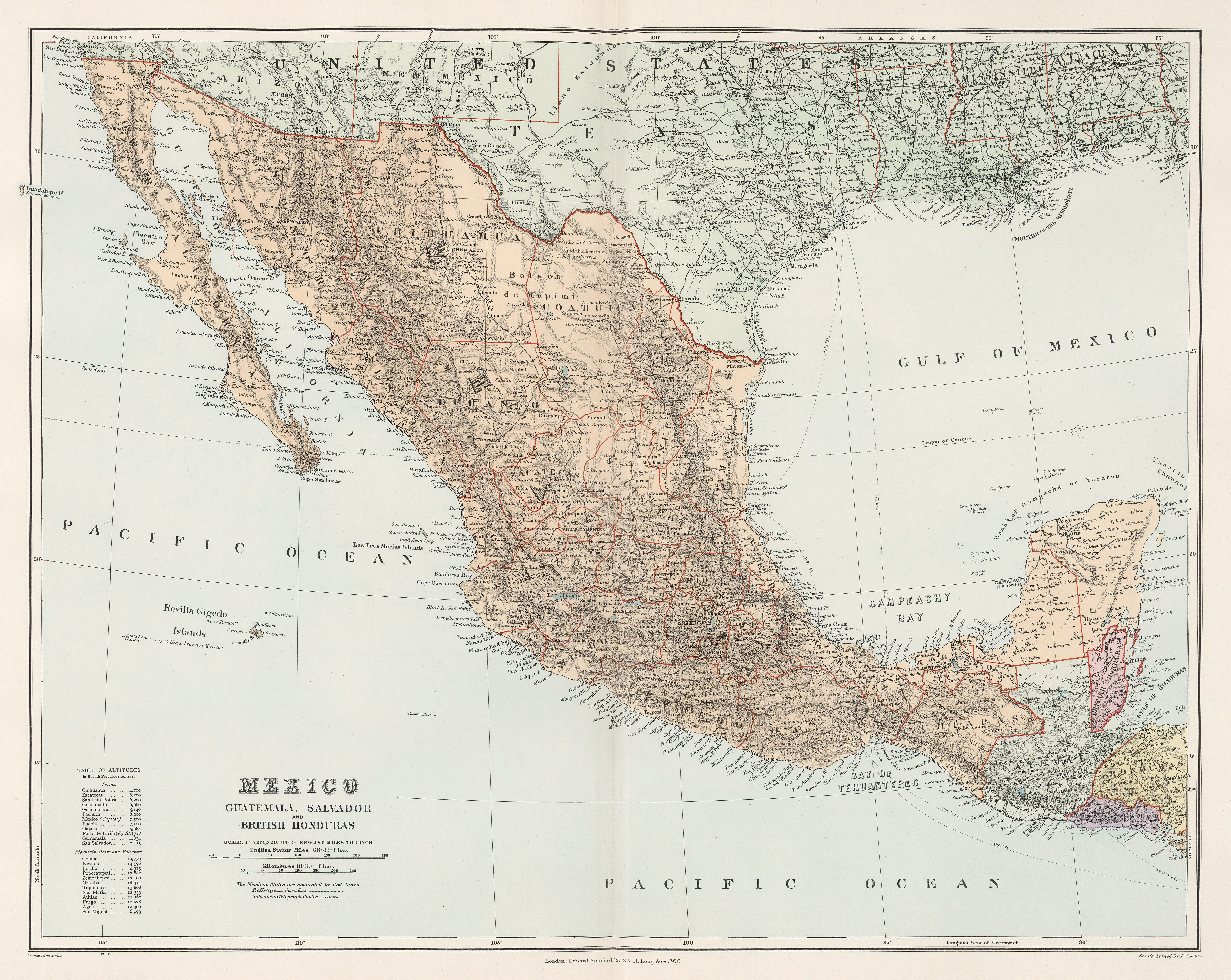 - Título usual: Mapa de México, Guatemala, El Salvador y Honduras Británica.
