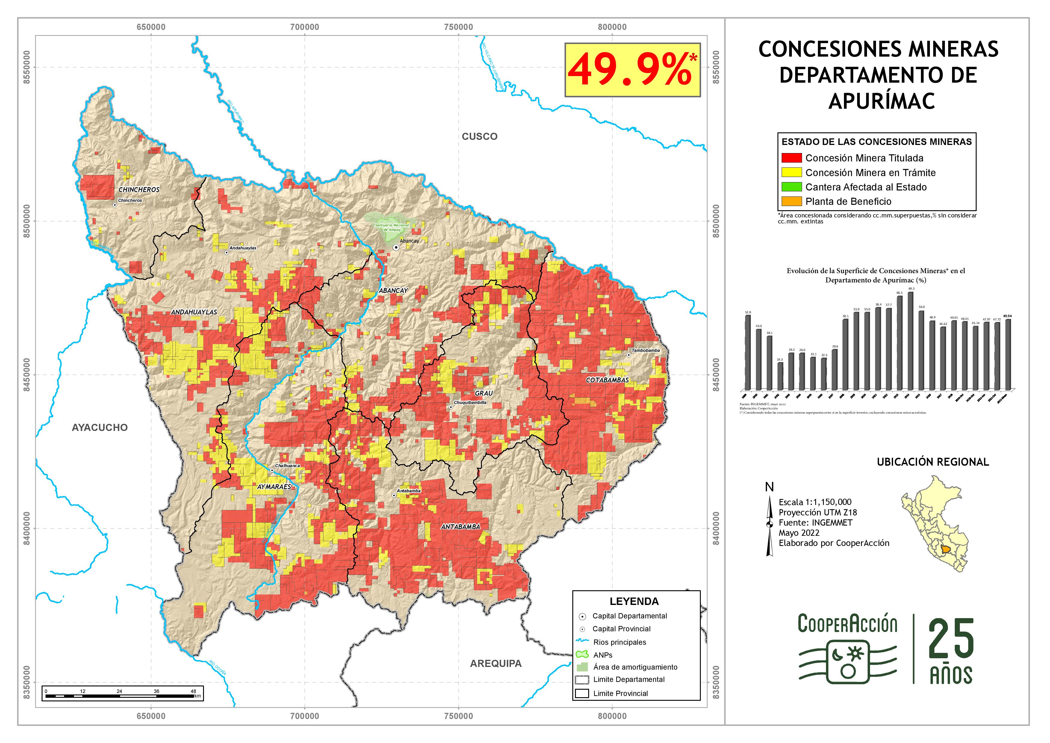 El aporte del sector minero al VAB ‘del departamento de Apurímac fue 61,1 por ciento en 2020, consolidándose como la actividad económica más importante del departamento; ello desde 2016, año en el que la empresa minera Las Bambas comenzó sus operaciones.