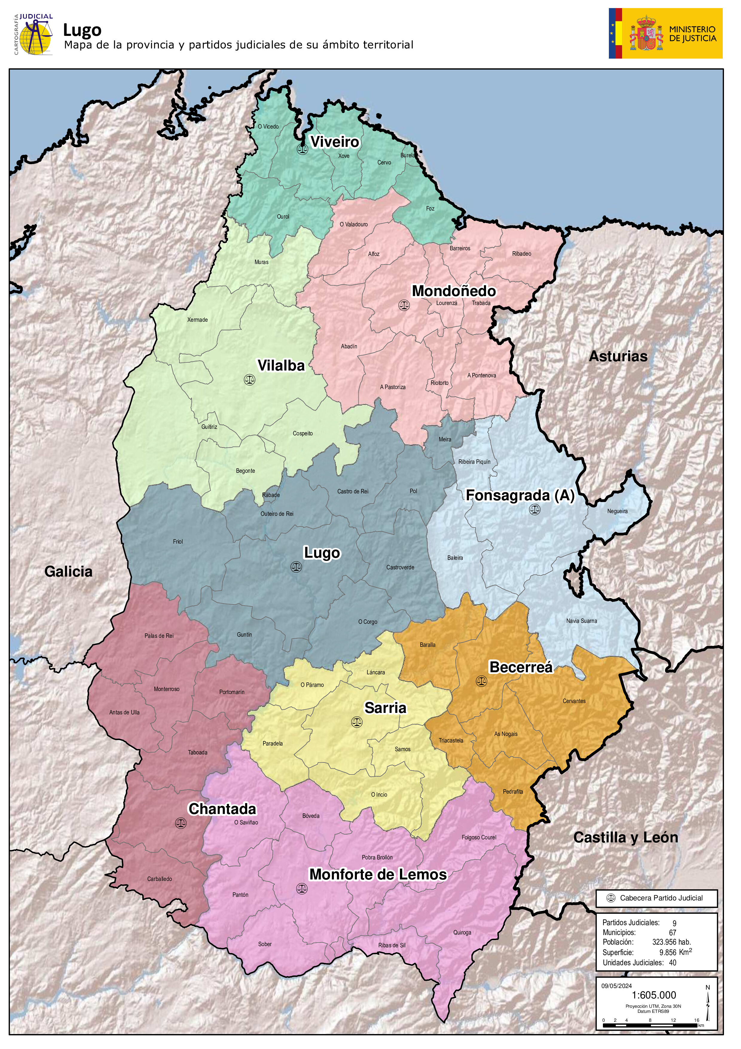 | 5 | Monforte de Lemos | Bóveda, Folgoso de Caurel, Monforte de Lemos, Pantón, Puebla del Brollón, Quiroga, Ribas de Sil, Saviñao, Sober. |
