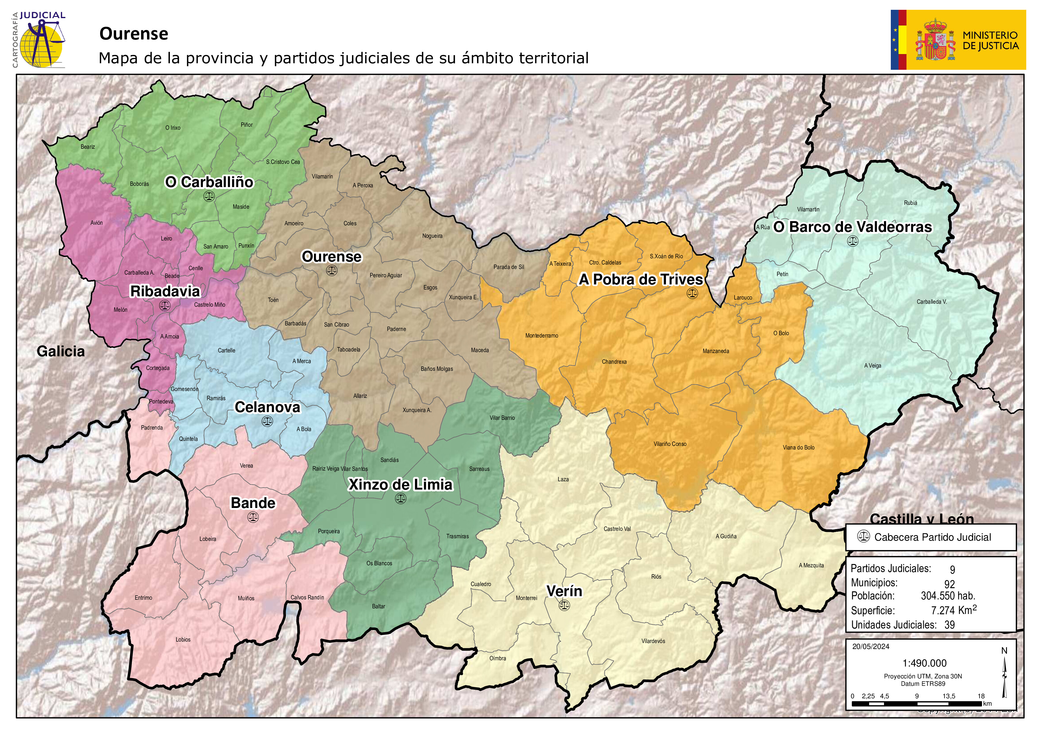 | 1 | Orense | Allariz, Amoeiro, Baños de Molgas, Barbadás, Coles, Esgos, Maceda, Nogueira de Ramuín, Orense, Paderne de Allariz, Parada de Sil, Pereiro de Aguiar, La Peroja, San Ciprián de Viñas, Taboadela, Toén, Villamarín, Junquera de Ambía, Junquera de Espadañedo. |