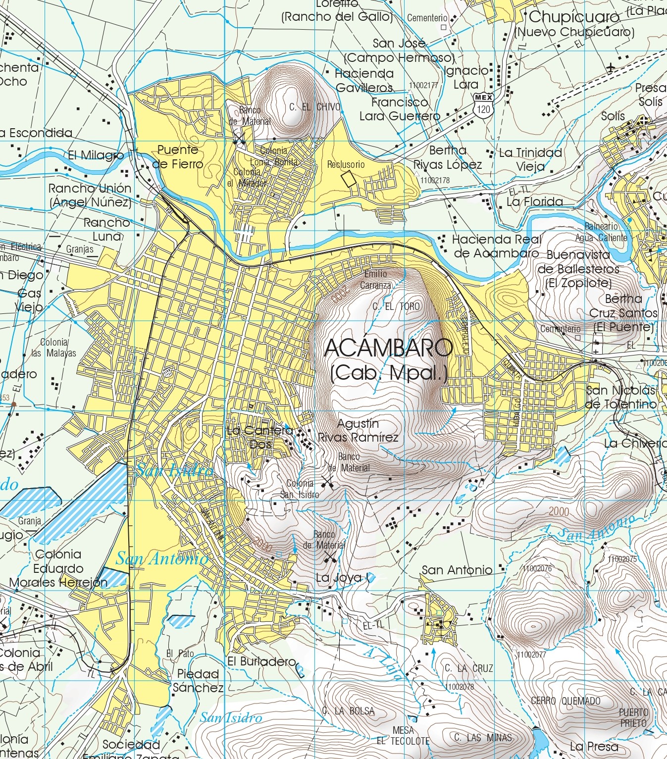 Relieve: Se asienta en el Valle de Acámbaro, rodeado por sierras y colinas.