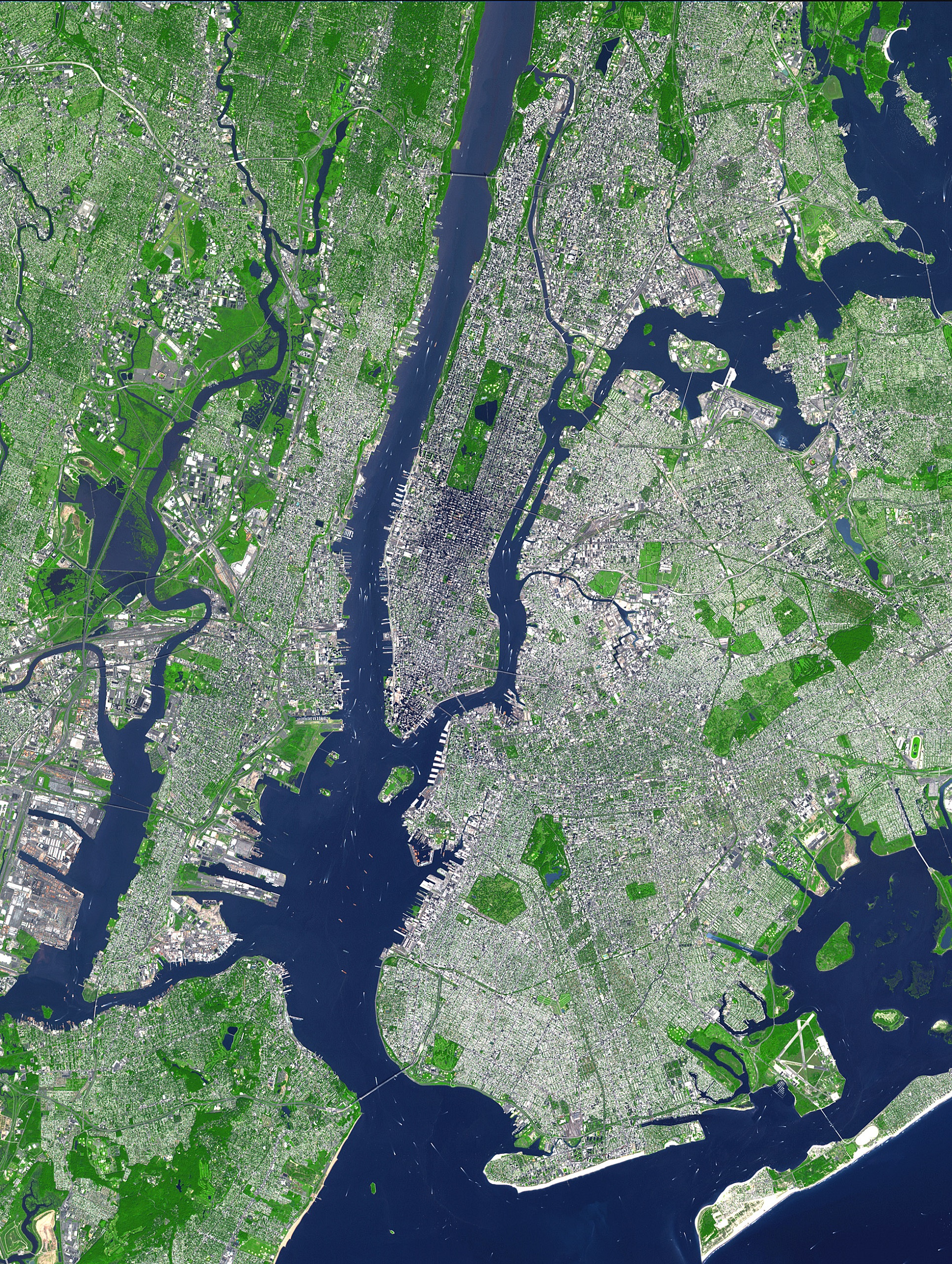 Nueva York se extiende a lo largo de la desembocadura del río Hudson. Es una ciudad insular con muchas islas, puentes y rascacielos.