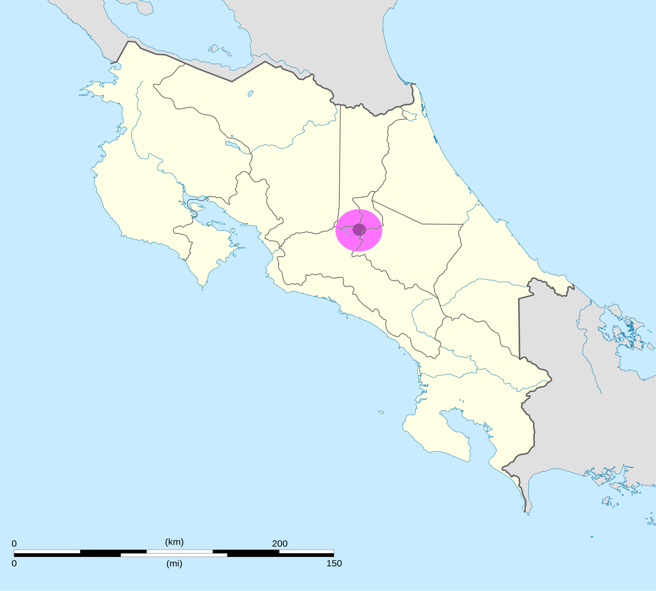 Se encuentra en el Valle Central, a unos 1,170 metros sobre el nivel del mar.
