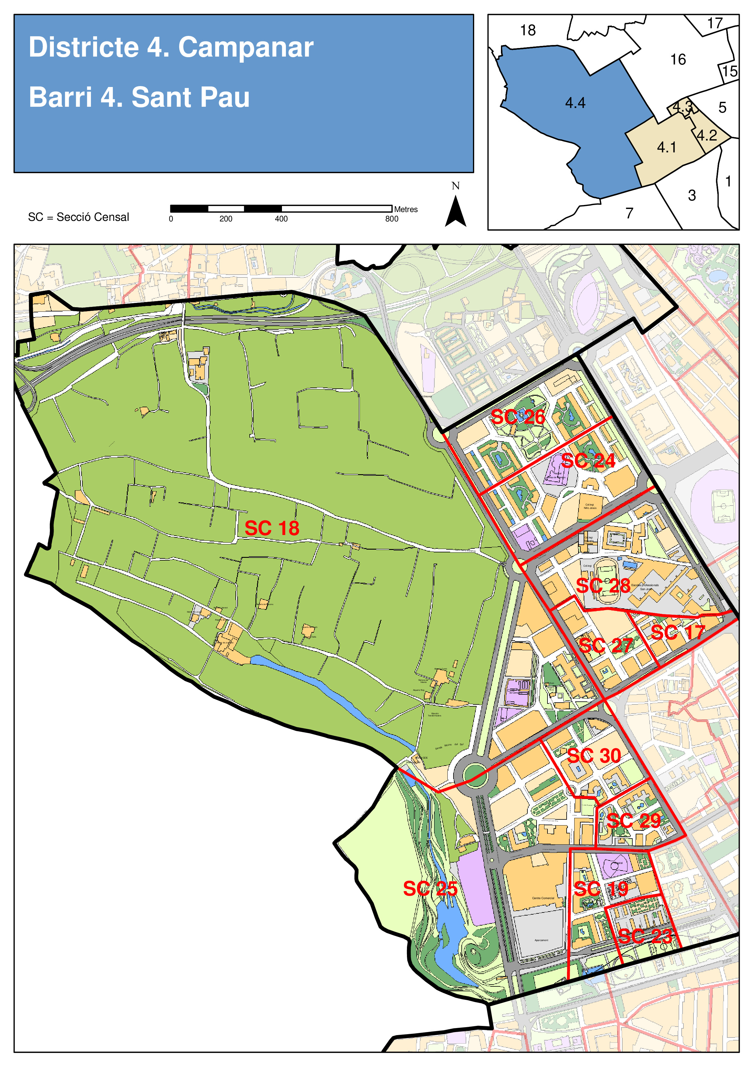 El Barrio de Sant Pau (en español San Pablo) forma parte del distrito de Campanar, al noroeste de Valencia. Está delimitado al norte por Benimàmet y Beniferri; al este, por Ciutat Fallera, Benicalap y Campanar; al sur por Nou Moles; y al oeste colinda con Paterna, Mislata y Quart de Poblet.