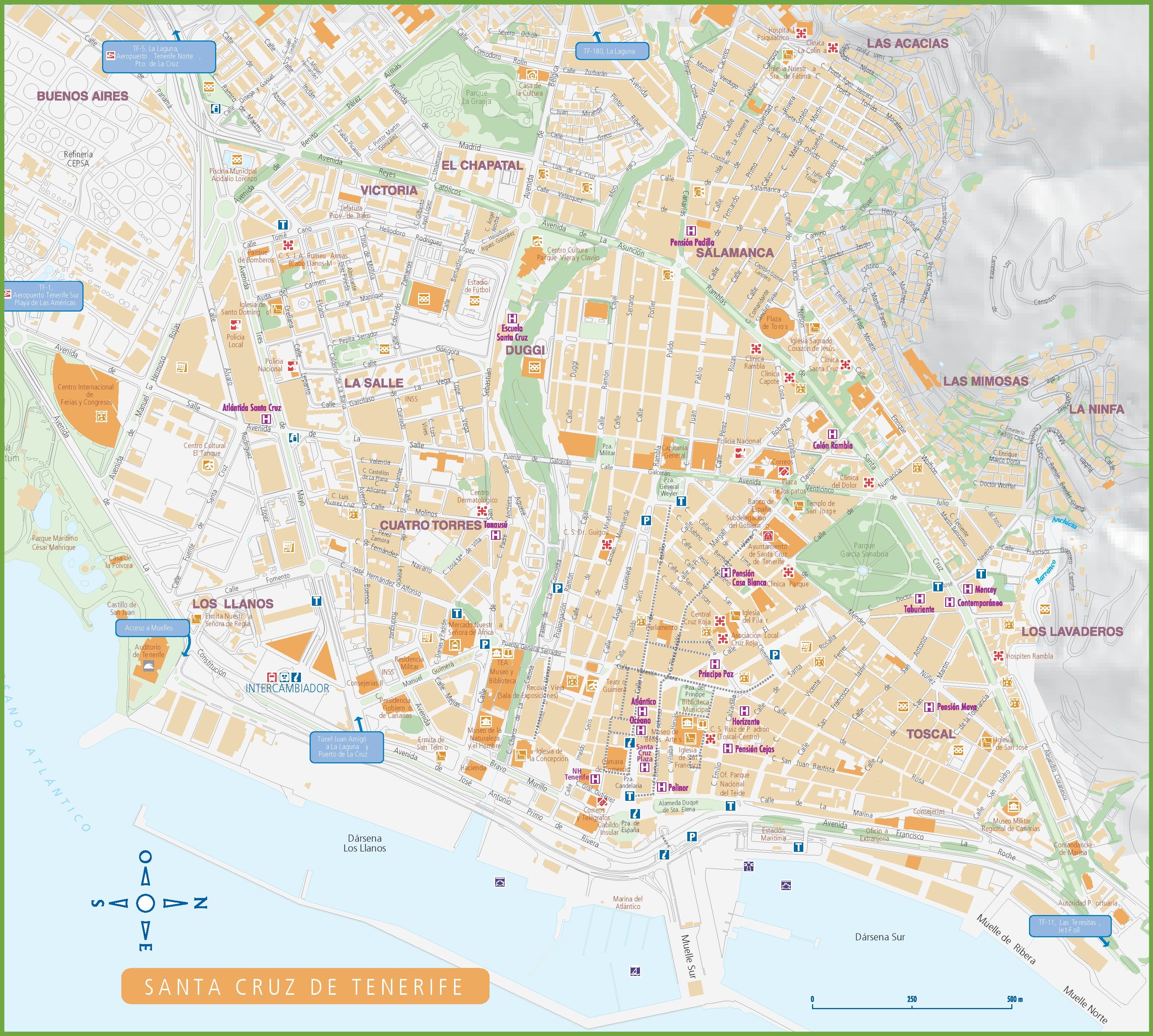 Plano del centro de la ciudad de Santa Cruz de Tenerife