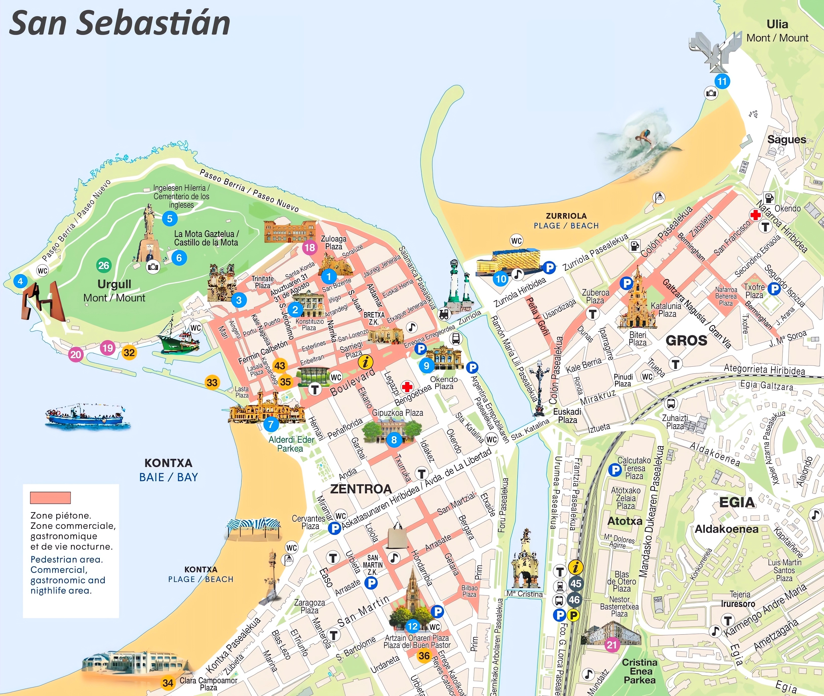 Corazón de la ciudad, al pie del monte Urgull y delimitada por el mar y el río.