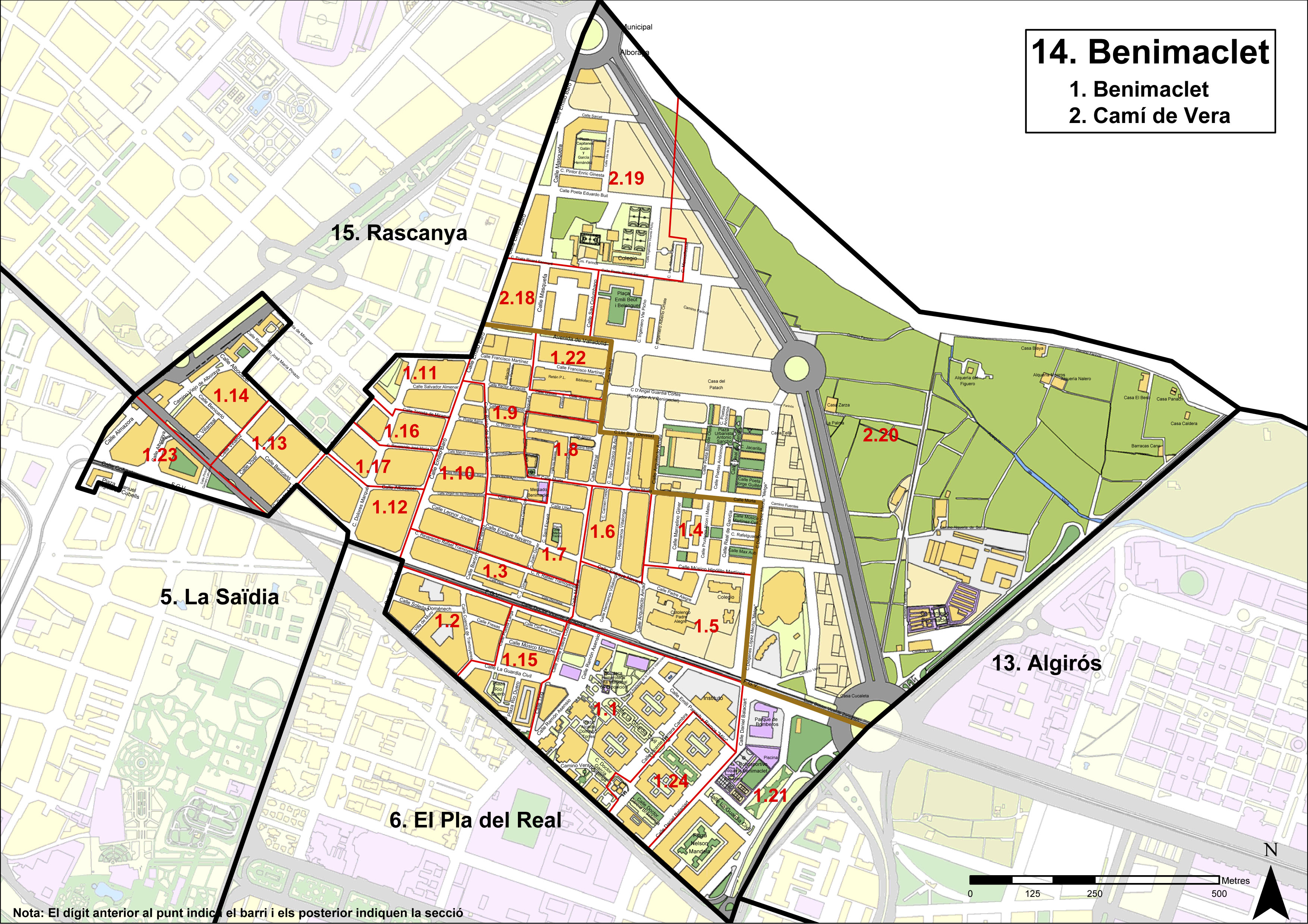 El distrito 14 de València incluye los barrios de Benimaclet y Camí de Vera, con una superficie de unos 1,57 km² y una población estimada de 28 541 habitantes en 2024, lo que arroja una densidad de aproximadamente 18 000 habitantes/km².