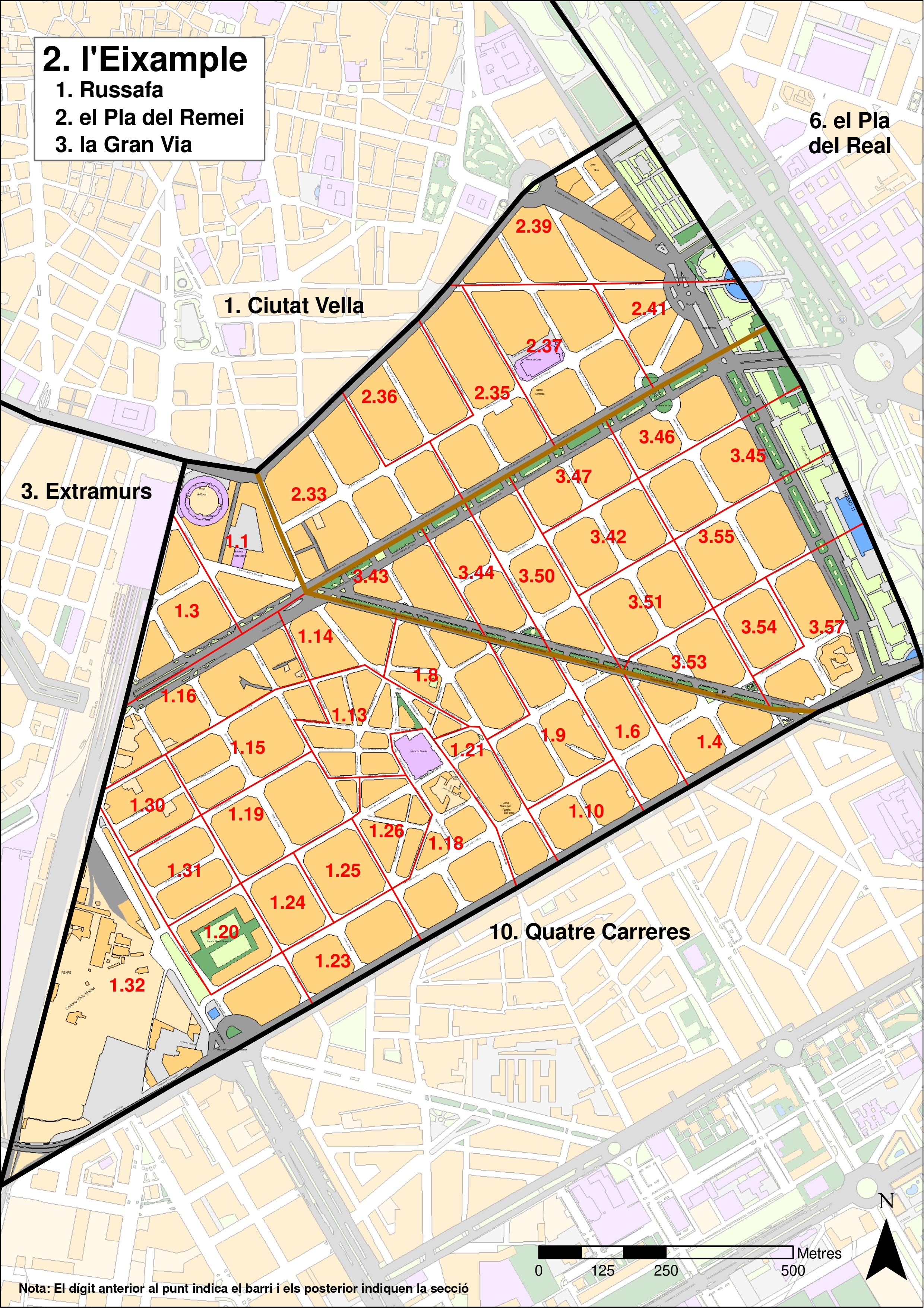 El Pla del Remei — zona residencial de alta calidad (~7.000 habitantes), con edifcios señoriales y arquitectura modernista exclusiva.