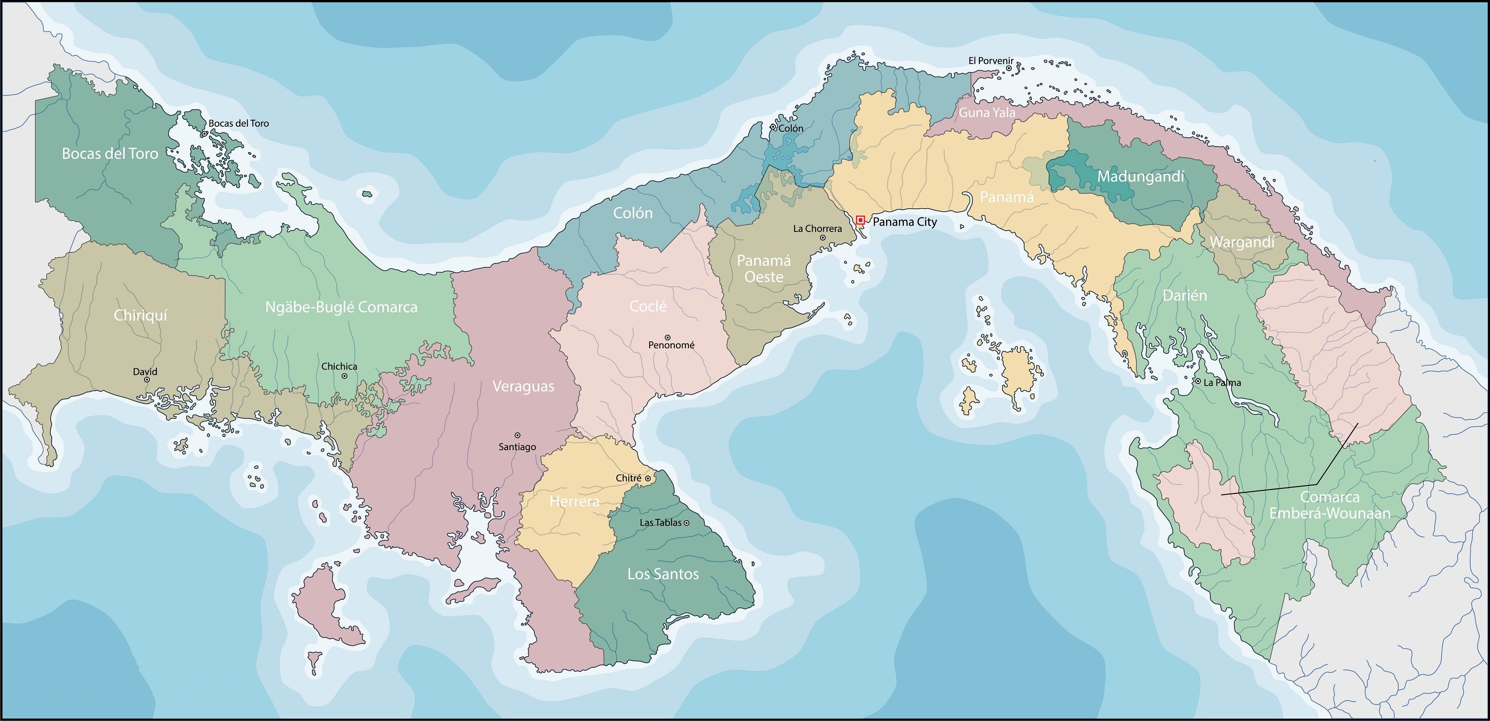 Panamá está dividido en 10 provincias y 6 comarcas indígenas (territorios autónomos reconocidos para pueblos originarios).