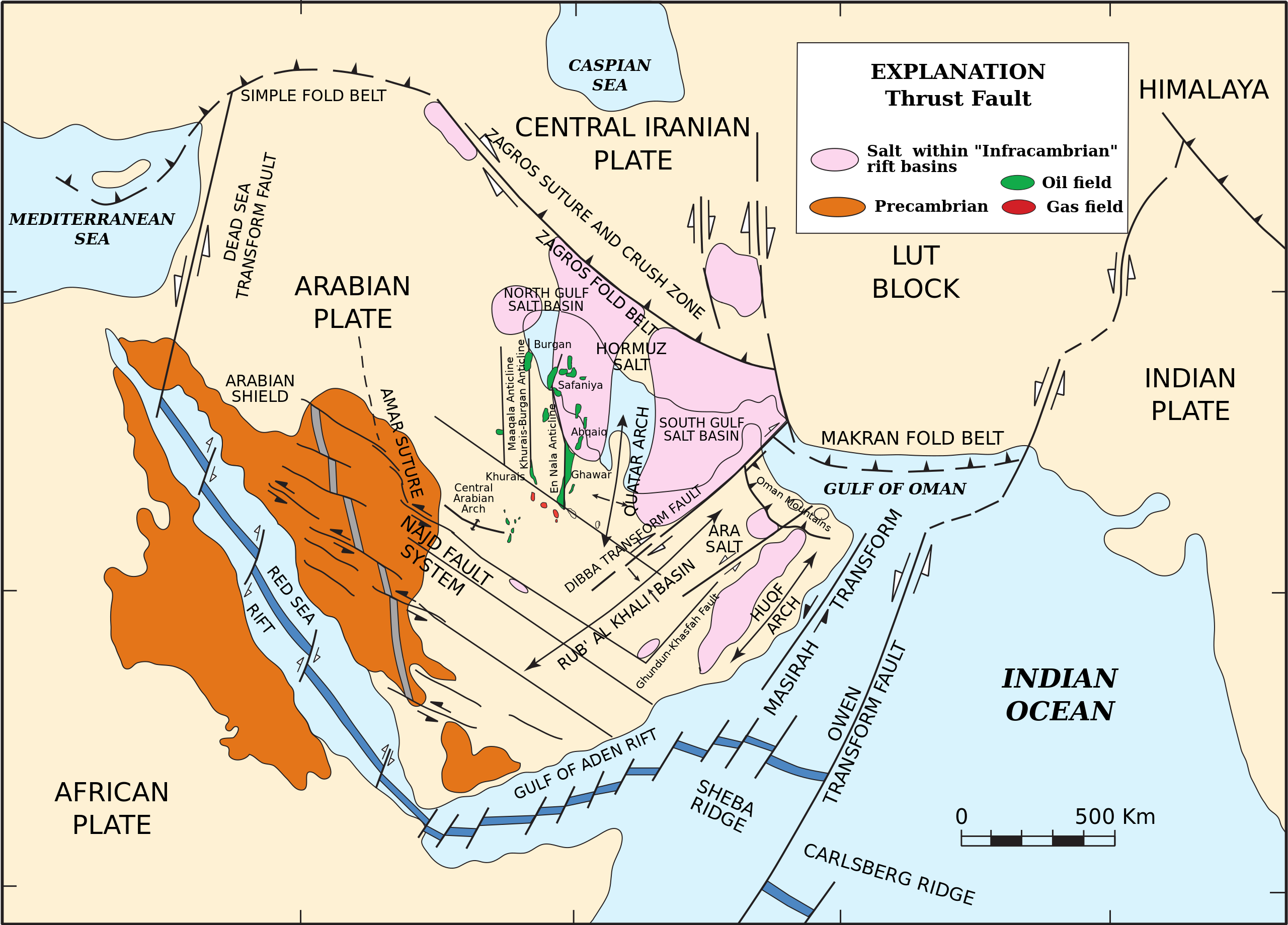 El Oriente Medio es una zona de colisión y desplazamiento de placas: