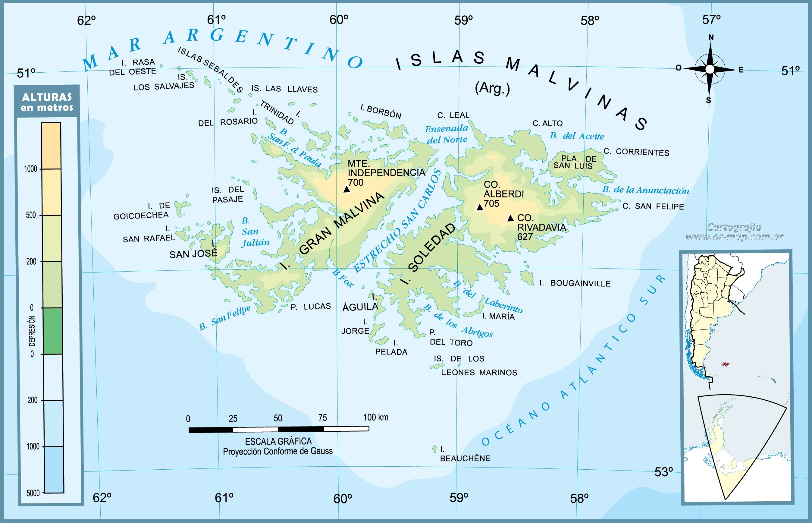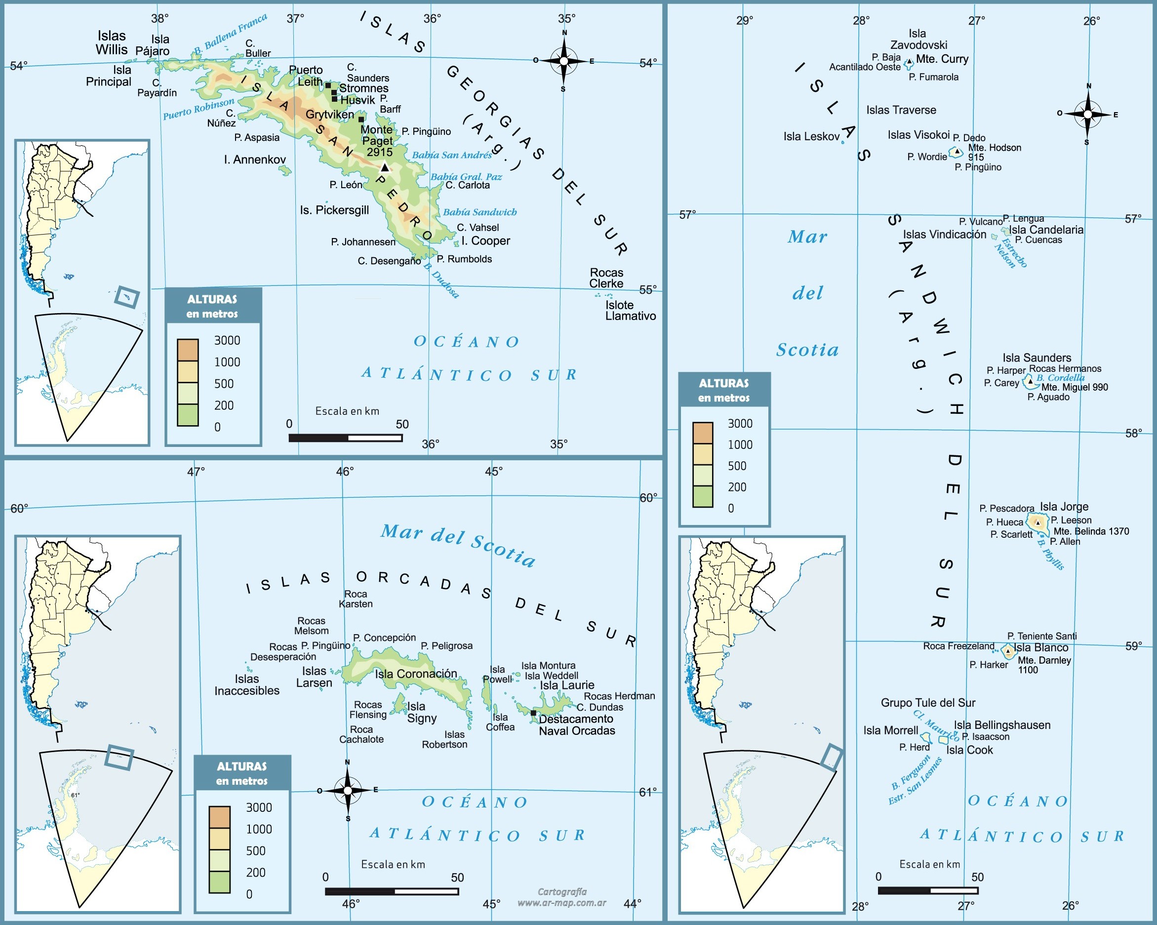 Georgias del Sur y Islas Sandwich del Sur también son reclamadas por Argentina y administradas por el Reino Unido.